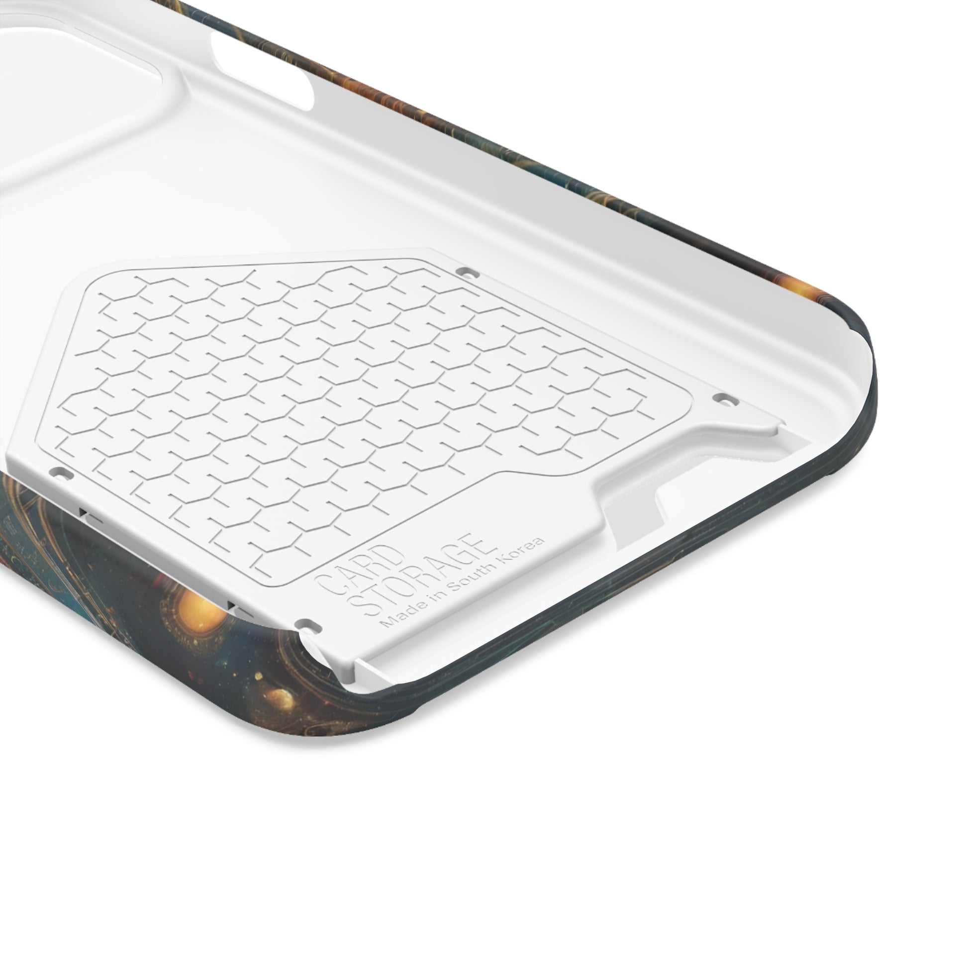 Futuristic and functional, this MagSafe-ready phone case fuses a sleek polycarbonate shell with a built-in card holder, keeping your cards, IDs, and few essentials securely at hand without adding bulk. Designed for seamless wireless charging and magnetic alignment, it snaps onto your device with precision while the discreet card sleeve stays snug against daily needs. Arriving in premium gift packaging, this iPhone case doubles as a standout tech gift, marrying durable protection with a modern, aspirational silhouette and multiple color options.